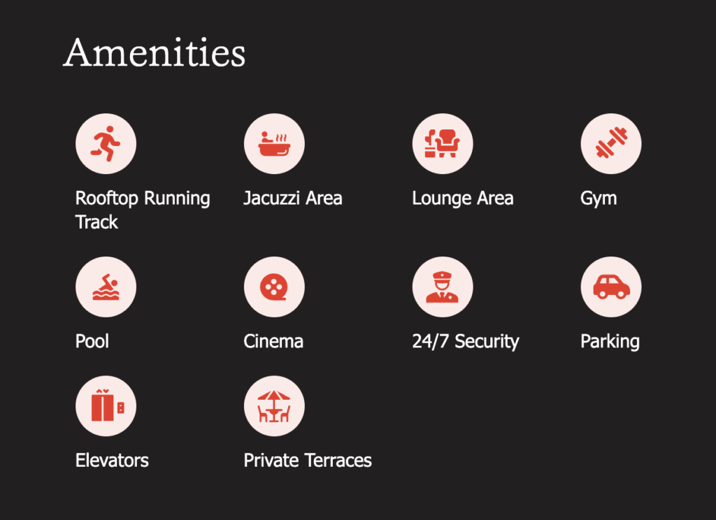 One of our most attractive developments, which motivates you to stay active in the gym, run around the track on the rooftop, swim, enjoy a romantic night watching a movie at the private cinema, or relax in the jacuzzi and enjoy the scent of nature offered by the Mexican Caribbean.